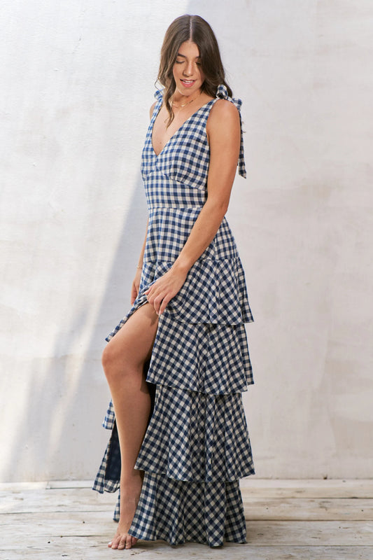 Dress-Jade By Jane Gingham Tiered Maxi-Navy